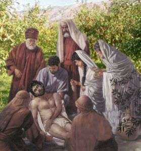 Après qu’un soldat romain se fut assuré de la mort de Jésus en lui perçant le côté avec sa lance, on déposa son corps dans une tombe neuve.