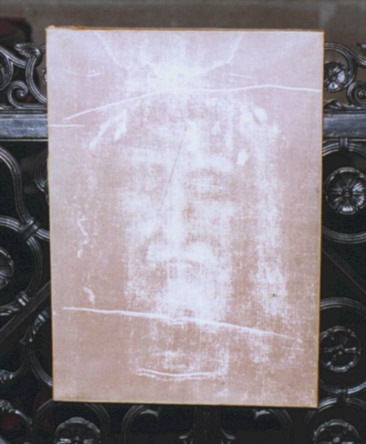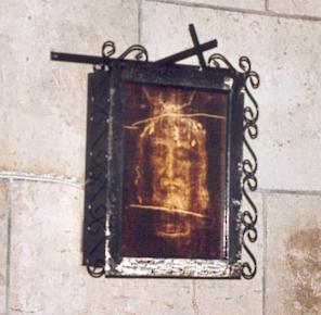 2) une reproduction du torchon de Turin, comprenant uniquement la tête, est exposée pas très loin de là
