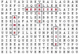 Voici un tableau qui nous montre 3 mots apparaissant verticalement en code 666 autour du mot "mépriser" ; c'est plutôt spectaculaire de voir trois mots apparaître selon ce code 666 qui un nombre assez grand. Le nombre 666 est fort connu comme symbole de l'Anti-Christ ou des sectes sataniques. Pourquoi ces mot autour du mots méprisé en code 666 : les choses qui sont les plus méprisées par l'ennemi suprême de Dieu (Satan) sont les plus belles oeuvre de Dieu :