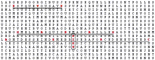 J'arrête là le commentaire qui pourrait facilement être prolongé dans l'extase de la surprenante coïncidence de ce tableau. En fait, ce tableau n'a rien d'exceptionnel, les combinaisons de lettre dans un texte sont si nombreuses qu'il est possible d'y trouver énormément de "coïncidence". C'est là le rôle de l'ordinateur.