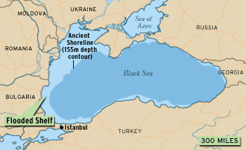 2. ancient shoreline (155m depth contour) = ancienne ligne de plage (contour de la plage à 155m de profondeur)
