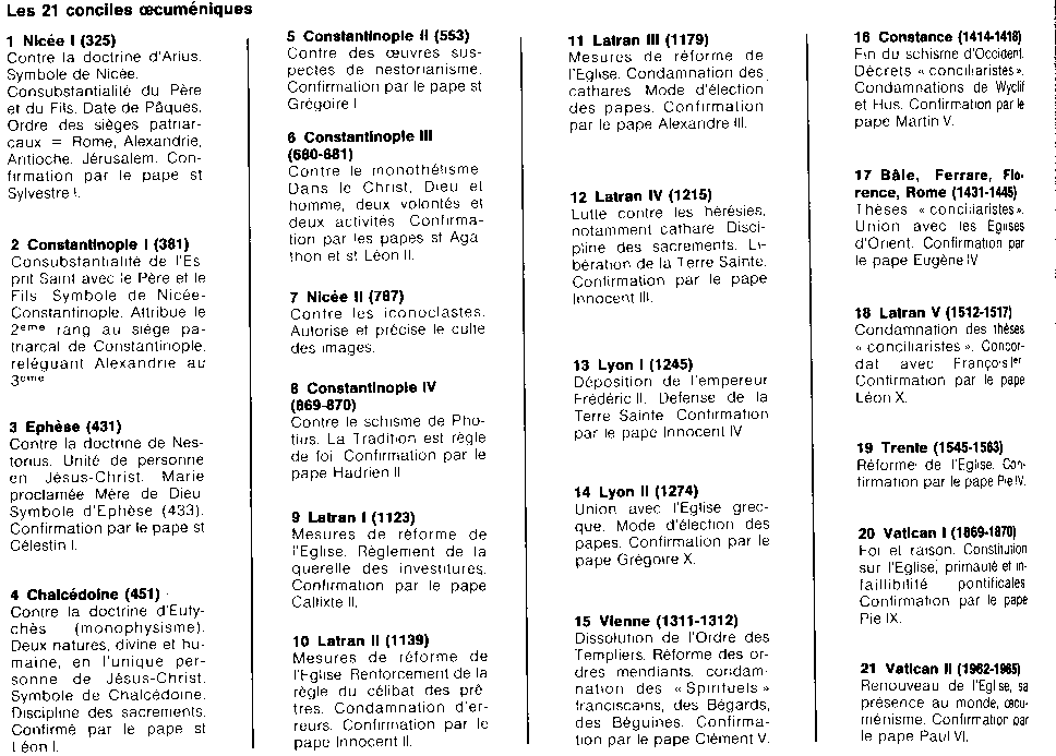 I) RESUMES DES 21 CONCILES |