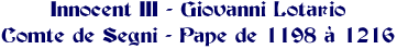 En 1208 Innocent brouillé avec Jean sans Terre jette l'Interdit sur le royaume d'Angleterre et frappe le roi d'excommunication qui finalement se soumet également à la suprématie du St Siège.