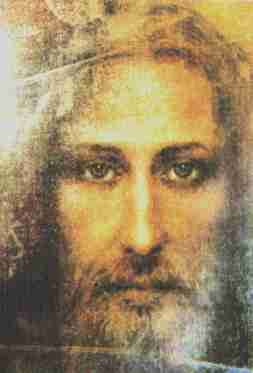 Le visage de Jésus, reconstitué par la NASA, selon des techniques de traitement de l'image, à partir des négatifs photographiques du suaire de Turin. |