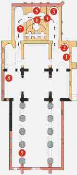 La 2ème église de Fulda, commencée en 802, consacrée en 819, a été détruite au 18ème siècle lors de la construction de l'actuelle cathédrale. C'était un édifice remarquable d'après les plans reconstitués.