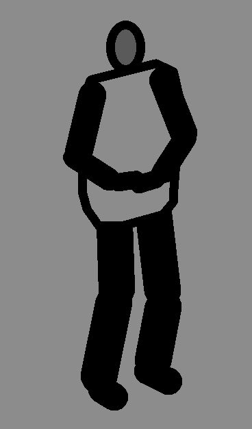 invisible à hauteur du hara, de gauche vers la droite, buste légèrement penché