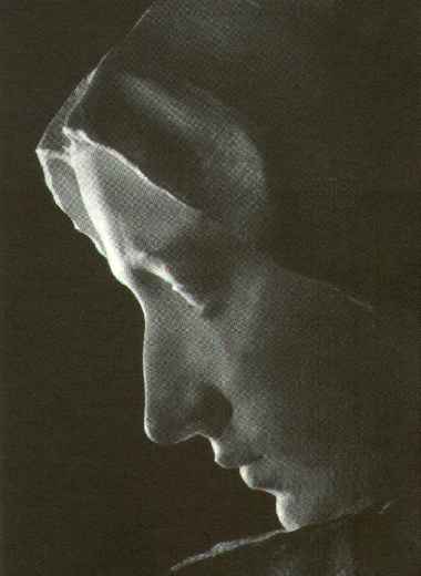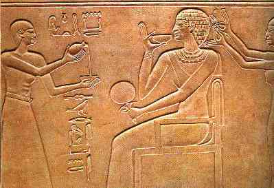 Relief incisé représentant la reine égyptienne Kawit constitué de lignes blanches (lumière) et de lignes sombres (ombres) |