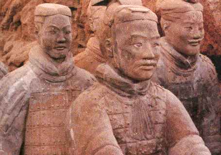 | Soldats dans la tombe de l'empereur chinois Shi Huangdi 6000 statues grandeur nature, en terre cuite, ont été découvertes en 1974. |