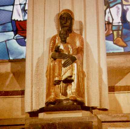 - statues isolées à haut degré de vénération, comme Jésus sur la croix*, comme Vierge en majesté* ou avec l'enfant Jésus, pouvant faire l'objet de procession, pèlerinage, pardon à date fixe.