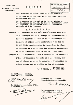 "Nous pouvons offrir au public un fil conducteur en lui livrant les archives maçonniques telles que nous les avons réunies. Partout, nous avons retrouvé la même force en action et partout nous avons constaté que ce mal n'était, ni à son origine, ni dans son essence, un mal Français. Parasite monstrueux, la Franc-Maçonnerie a grandi de notre abaissement". Bernard Faÿ