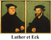 D’abord connu pour un traité sur le droit à l’intérêt (1515), il intervint lors du conflit sur les indulgences en publiant ses Obelisci. Dès lors, partisan d’une réforme dans l’Église, mais discernant dans la prédication luthérienne les germes d’un bouleversement des fondements de la foi et de la théologie, il devint et demeura sa vie durant l’interlocuteur et le contradicteur des théologiens réformateurs. En 1519, à Leipzig, Eck s’opposa à Carlstadt et à Luther, à l’instruction du procès duquel il prit part. Il écrivit alors ses premiers traités de polémique (notamment le De primatu Petri, 1521) et de réflexion théologique (en particulier sur les thèmes de la justification et de la pénitence).