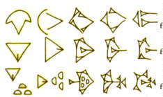 les dessins primitifs. De là l'écriture "cunéiforme"