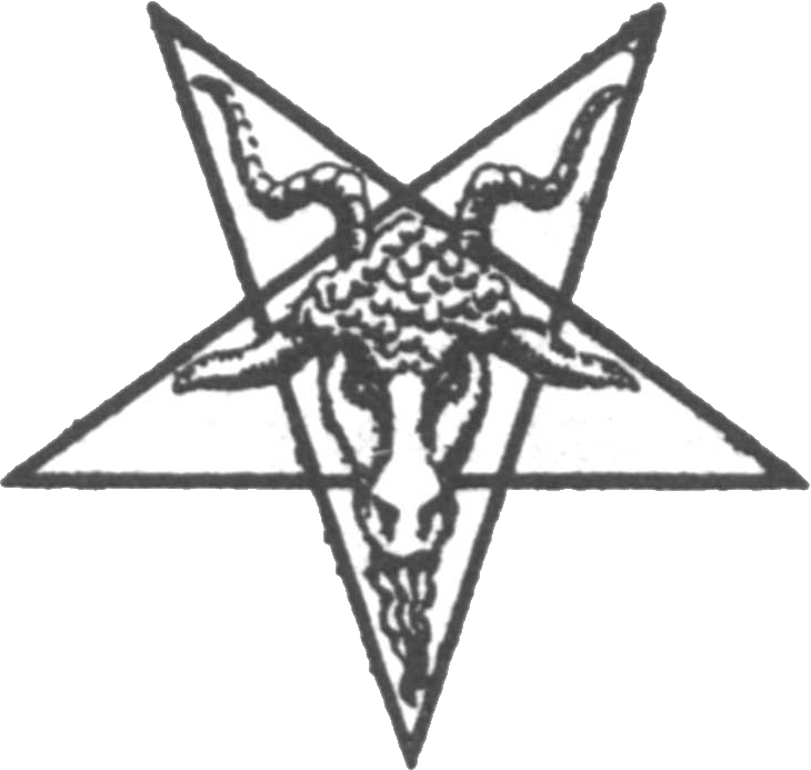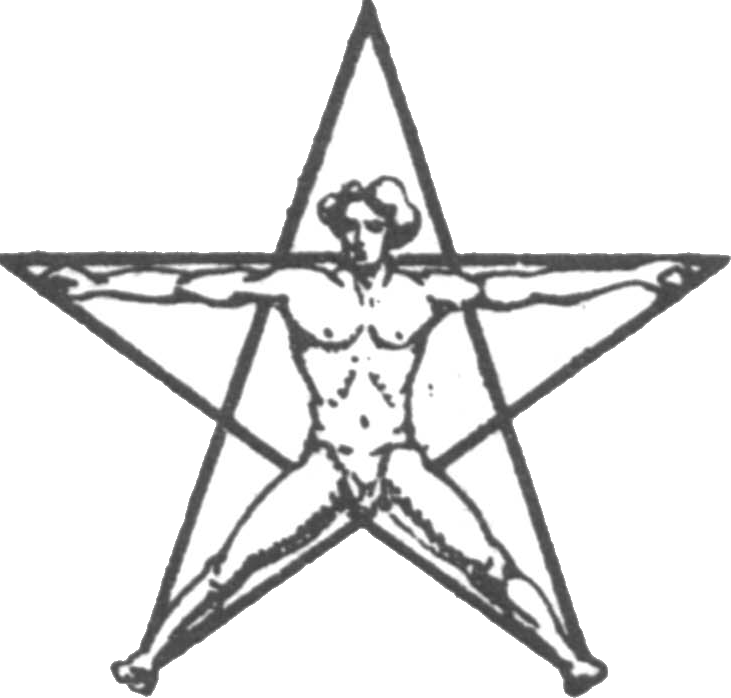 Traditionnellement le pentacle est considéré comme moyen incantatoire des rituels magiques : "magique blanche" lorsqu'il est représenté pointe en haut et "magique noire" s'il est représenté (comme c'est le cas ici) pointe en bas. Une tête de bouc satanique apparaissait à l'intérieur de certaines variantes de "magiques noires" ou une silhouette humaine à l'intérieur des "magiques blanches".