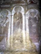 De gauche à droite, de saints personnages de l'Eglise : saint Pierre, le premier pape; saint Jacques le Majeur; saint Nicolas, évêque de Myre, saint Clément, pape.