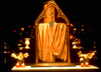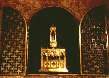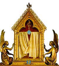 Elle avait été envoyée par Irène, impératrice de Byzance, à Charlemagne. La présence de ce voile à Constantinople est déjà évoquée au Vème siècle. Une étude scientifique contemporaine a permis d'établir que cette pièce est d'origine syrienne et peut remonter au Ier siècle. Dans ce voile, il faut surtout voir un signe du mystère de l'incarnation : Dieu venu parmi les hommes, épousant notre condition humaine.
