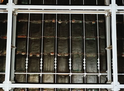 rangées de doubles entretoises en fonte, formant ainsi un réseau