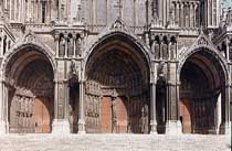 Le triple portail sud, précédé de porches, est antérieur de quelques années au portail nord (1ère moitié du 13ème siècle). Il déploie l'histoire de l'Église jusqu'au Jugement Dernier.