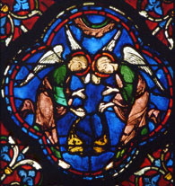 Des anges encensent la scène des funérailles Des anges encensent la scène des funérailles : Retour au Vitrail