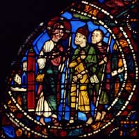 Sur la route vers le village d'Emmaüs deux disciples rencontrent Jésus. Ils ne le reconnaîtront qu'au signe de la fraction du pain.