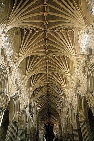 Voûtes nervurées de la nef de la cathédrale, Exeter, Grande-Bretagne.
