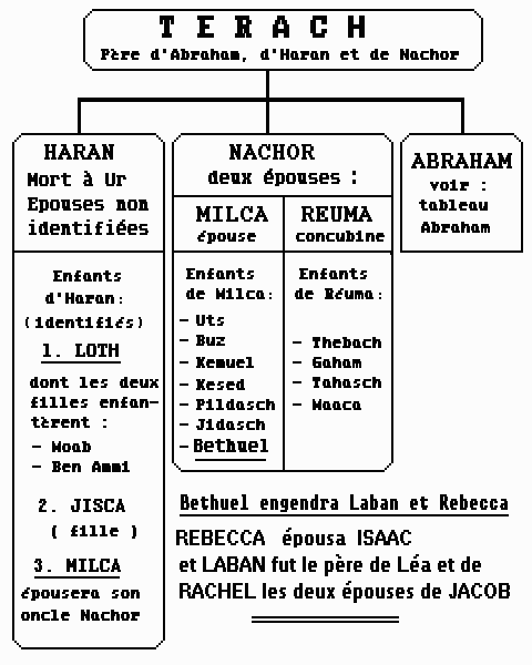 Léa première épouse de Jacob lui enfanta 6 fils et une fille : Ruben (1er né) Siméon, Lévi, Juda, Issacar, Zabulon et Dina - Zilpa, la servante de Léa enfanta : Gad et Aser. Rachel enfanta Joseph et mourut en accouchant Benjamin. Bilha, la servante de Rachel enfanta Dan et Nephtali.