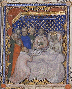 Saint Louis, sur son lit de mort, remettant ses Enseignements à son fils, Philippe III le Hardi.