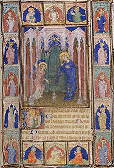 Annonciation, surmontée d'une Vierge à l'Enfant, d'un Christ de douleur et de saint Jean-Baptiste, encadrée par les figures des Apôtres, au milieu desquels, est représenté, en bas, le prophète Jérémie.