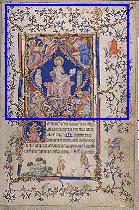 Christ en Majesté. Christ en Majesté. Christ en Majesté, entouré des Evangélistes et de leurs symboles. (BNF, LAT 18014) fol. 53 Petites Heures de Jean de Berry France, Paris XIVe s. (90 x 70 mm Précédent. Suivant. Petites Heures de Jean de Berry Page d'accueil.