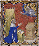 Jean de Berry priant. Jean de Berry priant. Jean de Berry priant devant Dieu qui le bénit. (BNF, LAT 18014) fol. 119v Petites Heures de Jean de Berry France, Paris XIVe s. (55 x 45 mm) Précédent. Suivant. Petites Heures de Jean de Berry Page d'accueil.