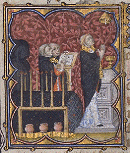 Service funèbre. Service funèbre. Service funèbre. (BNF, LAT 18014) fol. 134 Petites Heures de Jean de Berry France, Paris XIVe s. (55 x 45 mm) Précédent. Suivant. Petites Heures de Jean de Berry Page d'accueil.