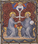 Trinité. Trinité. Trinité. (BNF, LAT 18014) fol. 137v Petites Heures de Jean de Berry France, Paris XIVe s. (55 x 45 mm) Précédent. Suivant. Petites Heures de Jean de Berry Page d'accueil.