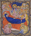 Dormition de la Vierge. Dormition de la Vierge. Dormition de la Vierge. Le Christ recueille son âme. (BNF, LAT 18014) fol. 144 Petites Heures de Jean de Berry France, Paris XIVe s. (55 x 45 mm) Précédent. Suivant. Petites Heures de Jean de Berry Page d'accueil.