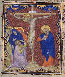 Crucifixion. Crucifixion. Crucifixion. Longin perce le flanc du Christ. (BNF, LAT 18014) fol. 164 Petites Heures de Jean de Berry France, Paris XIVe s. (55 x 45 mm) Précédent. Suivant. Petites Heures de Jean de Berry Page d'accueil.
