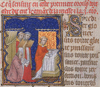 Jean de Berry assistant à la messe. Jean de Berry assistant à la messe. Jean de Berry assistant à la messe. (BNF, LAT 18014) fol. 167v Petites Heures de Jean de Berry France, Paris XIVe s. (55 x 45 mm) Précédent. Suivant. Petites Heures de Jean de Berry Page d'accueil.