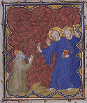 Hospitalité d'Abraham. Hospitalité d'Abraham. Hospitalité d'Abraham. (BNF, LAT 18014) fol. 188 Petites Heures de Jean de Berry France, Paris XIVe s. (55 x 45 mm) Précédent. Suivant. Petites Heures de Jean de Berry Page d'accueil.