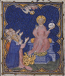Adoration du Christ. Adoration du Christ. Adoration du Christ. (BNF, LAT 18014) fol. 194v Petites Heures de Jean de Berry France, Paris XIVe s. (55 x 45 mm) Précédent. Suivant. Petites Heures de Jean de Berry Page d'accueil.