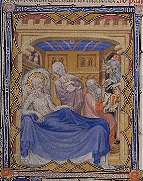 Naissance de saint Jean-Baptiste. Naissance de saint Jean-Baptiste. Naissance de saint Jean-Baptiste. (BNF, LAT 18014) fol. 207 Petites Heures de Jean de Berry France, Paris XIVe s. (90 x 70 mm) Précédent. Suivant. Petites Heures de Jean de Berry Page d'accueil.