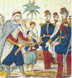 | 1837 | Le général Bugeau signe avec Abd el-Kader le traité de Tafna. Celui -ci tourne en faveur de l'émir : il obtient les deux tiers du territoire de l'ex-régence ( le centre et l'ouest ) et l'exil, par les français, des ses propres opposants. Il établit sa capitale à Mascara. Mais la guerre ne tardera pas à reprendre : A Constantine, où la résistance est avant tout pro-ottomane, tombe aux mains du général Damrémont le 13 octobre | ||