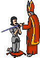 ses demi-frères, il a été emprisonné à Neufchâteau. De son côté, Griffon, de nouveau capturé, parvient encore à s'échapper et reprend l'offensive en s'alliant aux Saxons. Mais, c'est compter sans les talents de guerrier de Pépin le Bref. Celui-ci défait les troupes saxonnes et se fait remettre son demi-frère rebelle. Soit par bon vouloir fraternel, soit parce qu'il pense mettre un terme à sa rébellion en satisfaisant partiellement ses revendications, il nomme Griffon duc du Mans et lui confie le gouvernement de 12 comtés. C'est alors, en 747, que le très pieux Carloman décide de se retirer du monde et de se faire moine. Désormais, Pépin le Bref est seul maître du royaume franc. Bientôt, le maire du palais va se faire proclamer roi, et les Carolingiens vont définitivement succéder aux Mérovingiens. |