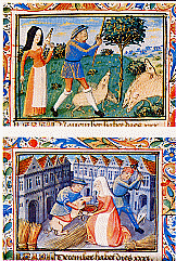 L'année suivante, le duc de Bourgogne, Philippe le Hardi, préside à la création de la fameuse "cour d'Amour" qui débat de casuistique amoureuse et se réunit à la Saint-Valentin pour un tournoi poétique en l'honneur des dames. Ces initiatives restent cependant sans grande prise sur la réalité de l'époque. La foule se rassemble pour voir passer le cortège du "prince d'Amour et de ses galants musiciens", mais la "vénération" des dames demeure lettre morte pour le peuple comme pour les bourgeois. La poétesse Christine de Pisan (qui meurt à peu près en même temps que Jeanne d'Arc) est la première "féministe" à dénoncer l'inégalité des sexes. Ainsi, elle soutient que "si la coutume était de mettre les filles à l'école, elles comprendraient subtilités d'art et de science comme il faut". Les hommes entretiennent les femmes dans une ignorance dont ils osent ensuite se gausser ! Tout le savoir d'une femme doit se borner à tenir une maison et à obéir à son époux. Deux choses sont essentielles pour elle : "la salvation de l'âme et la paix du mari" ; la première passe d'ailleurs par la seconde car seules les femmes soumises gagnent le Paradis ! Il faut se méfier des séductions de la mode et éviter d'attirer les regards. Pas de décolleté trop hardi, de corsage ajusté ou de hennin démesuré ! Dans la rue elle doit marcher "la tête droite, les paupières basses, la vue droit devant soi quatre toise et à bas terre, sans regarder homme ou femme qui soit à droite ou à gauche" ! Ces préceptes austères ne sauraient malgré tout dissimuler une relative liberté des mœurs. Une femmes maquillée est "damnée sans rémission"., tandis que celle qui avoue avoir "dix ou douze fois couché avec son écuyer" ne risque que le Purgatoire ! Pour conjurer le péril féminin, la société médiévale reprend la tradition du "harem" islamique et du "gynécée" grec. La "chambre des dames", au plus secret de la maison, est un domaine réservé, jalousement gardé par une veuve de la parenté (et non l'épouse du maître de maison, souvent trop jeune). Le temps se passe en travaux d'aiguille. Seuls les hommes de la famille y ont accès. Ils y viennent après souper se faire masser, peigner ou épouiller. Entre la paysanne accablée de besognes et d'enfants et l'épouse d'un commerçant aisé, l'abîme est immense. C'est au nom de toutes cependant que l'humaniste Jean de Montreuil fait dire à l'une de ses héroïnes : "Ainsi nous, femmes innocentes, nous serons toujours maudites par ces hommes qui se croient tout permis, et au-dessus des lois, tandis que rien ne nous est dû (...) Nous ne sommes pas des compagnes mais des captives ou des esclaves achetées... Ils sont sévères pour les autres et indulgents pour soi : ce sont des juges iniques". |