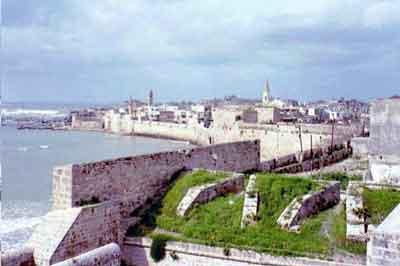 Conquise par les Arabes en 636, elle fut reconstruite peu après et son port réaménagé à la fin du IXe siècle.