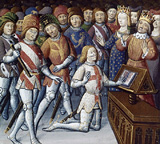 Issu en général d’un lignage noble, mais parfois de naissance modeste, accepté par sa seule valeur, le chevalier doit mériter son intégration dans la communauté qui entoure le roi. Devenir chevalier et rencontrer le roi qui fait les chevaliers est le rêve qui habite le personnage de Perceval le Gallois, dans le Conte du Graal, à partir du moment où il a vu apparaître devant ses yeux éblouis les armures étincelantes des chevaliers qui sortent des profondeurs du bois où il chasse. Grâce à l’enseignement que lui donne le "preudomme", Gornemant de Goort, il va découvrir que la chevalerie ne se réduit pas à ces apparences brillantes et apprend non seulement le maniement des armes, mais aussi les obligations du chevalier : le respect de la vie de l’adversaire, l’utilisation raisonnable de la force qui doit servir la justice et le droit, l’aide à apporter aux dames, aux faibles et aux victimes, la fréquentation des églises et le salut de son âme. Perceval est alors adoubé et reçoit l’ordre de chevalerie, "l’ordre le plus élevé que Dieu ait établi et inspiré" qui "ne souffre aucune bassesse" [vv.1636-38]. La dernière étape que le chevalier doit parcourir est la découverte progressive de la charité, de l’ouverture aux autres et de la foi. Loin de n’être qu’un ordre militaire, la chevalerie est présentée comme l’aspiration aux plus hautes missions humaines.