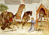 Au cours du XIIIe siècle, sous l’influence grandissante de l’église et en particulier des ordres religieux, l’éthique chevaleresque se fait de plus en plus exigeante : le chevalier doit exclusivement mettre sa force et ses capacités guerrières au service de la foi et de la chrétienté. Y a-t-il ici la volonté de canaliser les forces vives d’une jeunesse souvent turbulente et brutale, qui aime se battre, qui cherche à s’enrichir dans les tournois et qui n’hésite pas à faire couler le sang dans des combats exclusivement mondains ? Il est probable aussi que le souvenir des croisades de la fin du XIIe siècle en particulier de la troisième croisade qui, pour venger la prise de Jérusalem par Saladin, vit partir outremer le roi Philippe-Auguste et la chevalerie de France, a fait réfléchir sur le rôle que devait jouer l’élite militaire du pays. Quant aux clercs qui écrivent au XIIIe siècle les suites romanesques de l’histoire arthurienne comme la Queste du Graal ou le Lancelot en prose, ils sont issus d’un milieu religieux et ont contribué à la christianisation de l’idéal chevaleresque.