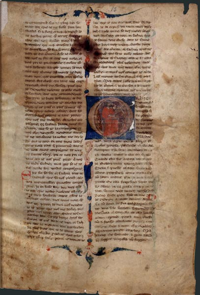 Le feuillet présenté montre justement le passage très brutal, au milieu de la deuxième colonne, entre le texte français de Guiron le Courtois et, sans aucune rupture, une version fortement italianisée du même roman. Il s'agit là de la première traduction connue d'un roman arthurien français à destination d'un public italien.