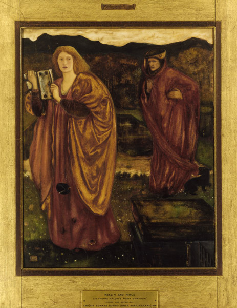 Nimüe est l'autre nom donné à Viviane, la Dame du Lac, que popularise Sir Thomas Malory au XVe siècle. Burne-Jones met en scène l'envoûtement de Merlin par la fée.
