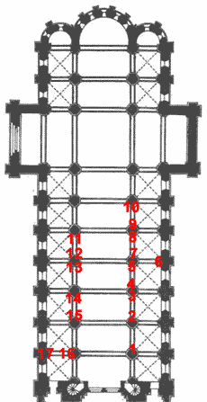 fois cinq lancettes) dans le rond-point. Au niveau des travées, les