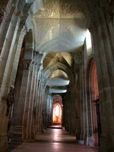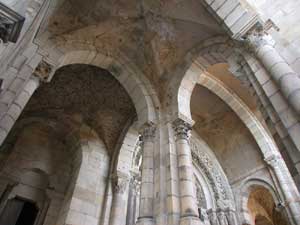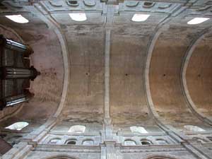 berceau au centre et un voûtement d'arêtes dans les collatéraux. Il