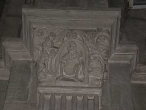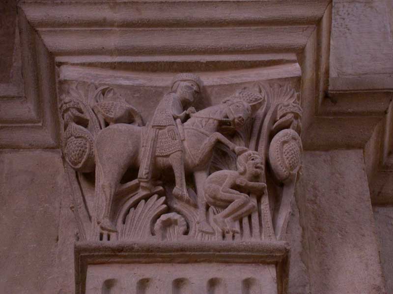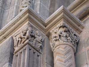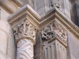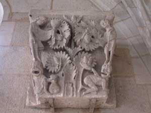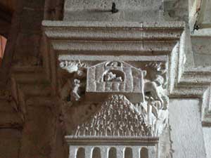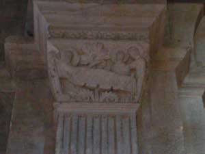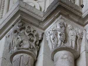 est entouré de quatre chapiteaux historiés reposant sur des colonnes