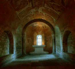 voûtes d'arêtes et des colonnes massives. Le vaisseau central est