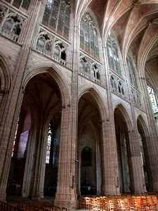 flamboyante au nord (ci-dessus à droite). Le triforium de la nef se